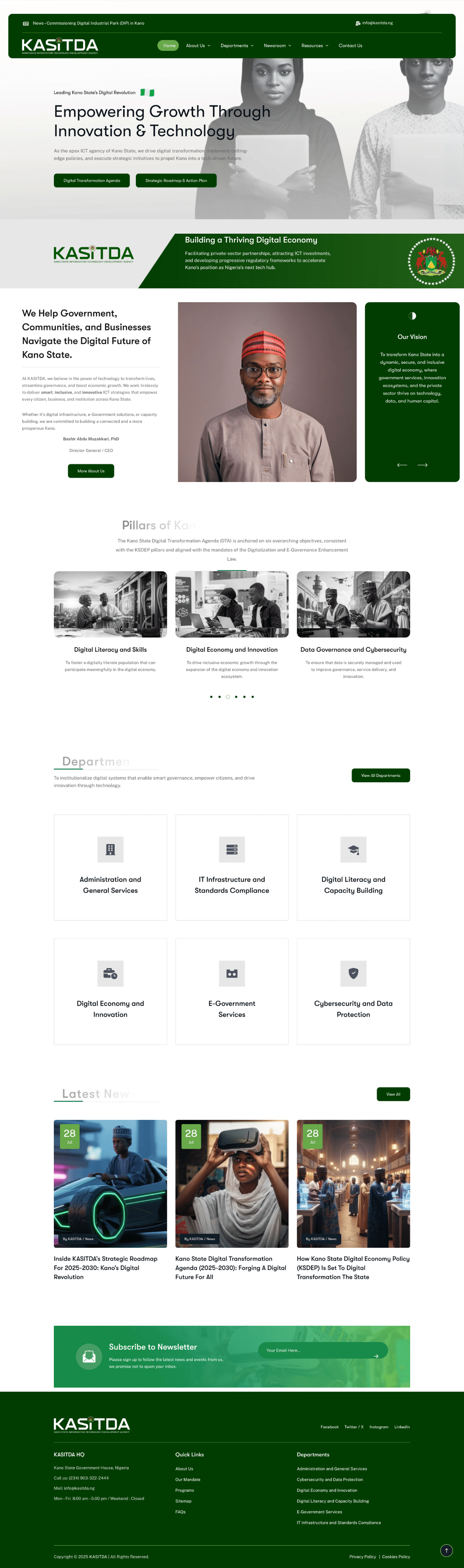 We designed and developed the official website for the Kano State Information Technology Development Agency (KASITDA). Our team also provides complete ongoing management, including maintenance, SEO, email services, content updates, and form development.