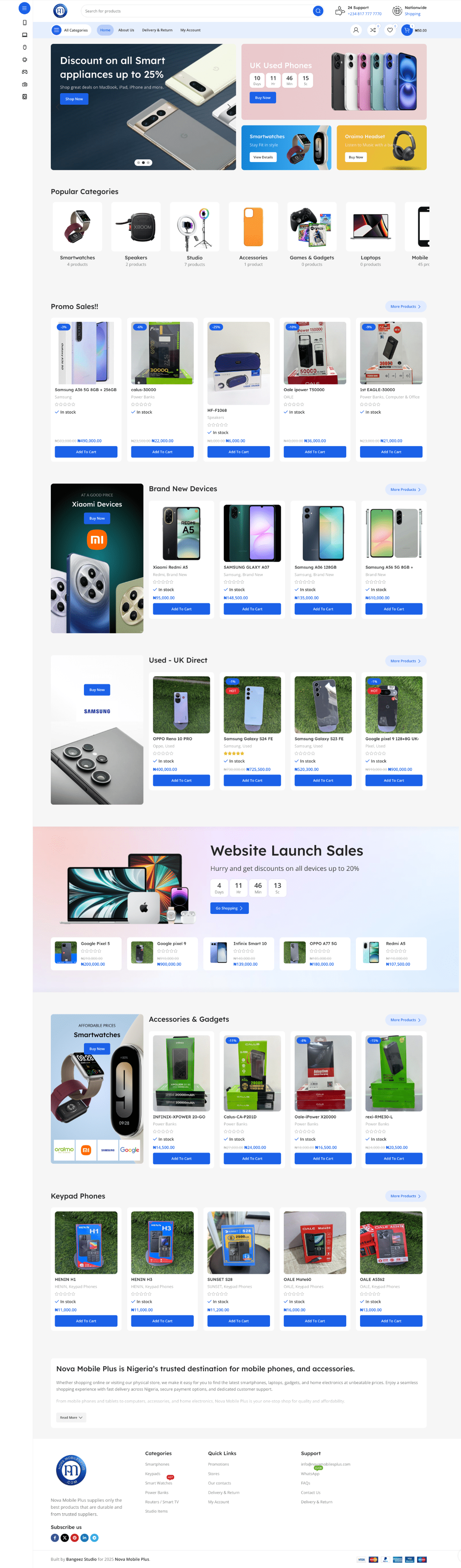 We built the Nova Mobiles Plus e-commerce website, delivering a fast, secure, and user-friendly platform for selling smartphones and accessories. Our team also handles ongoing management, including maintenance, SEO, product updates, email services, and performance optimization.
